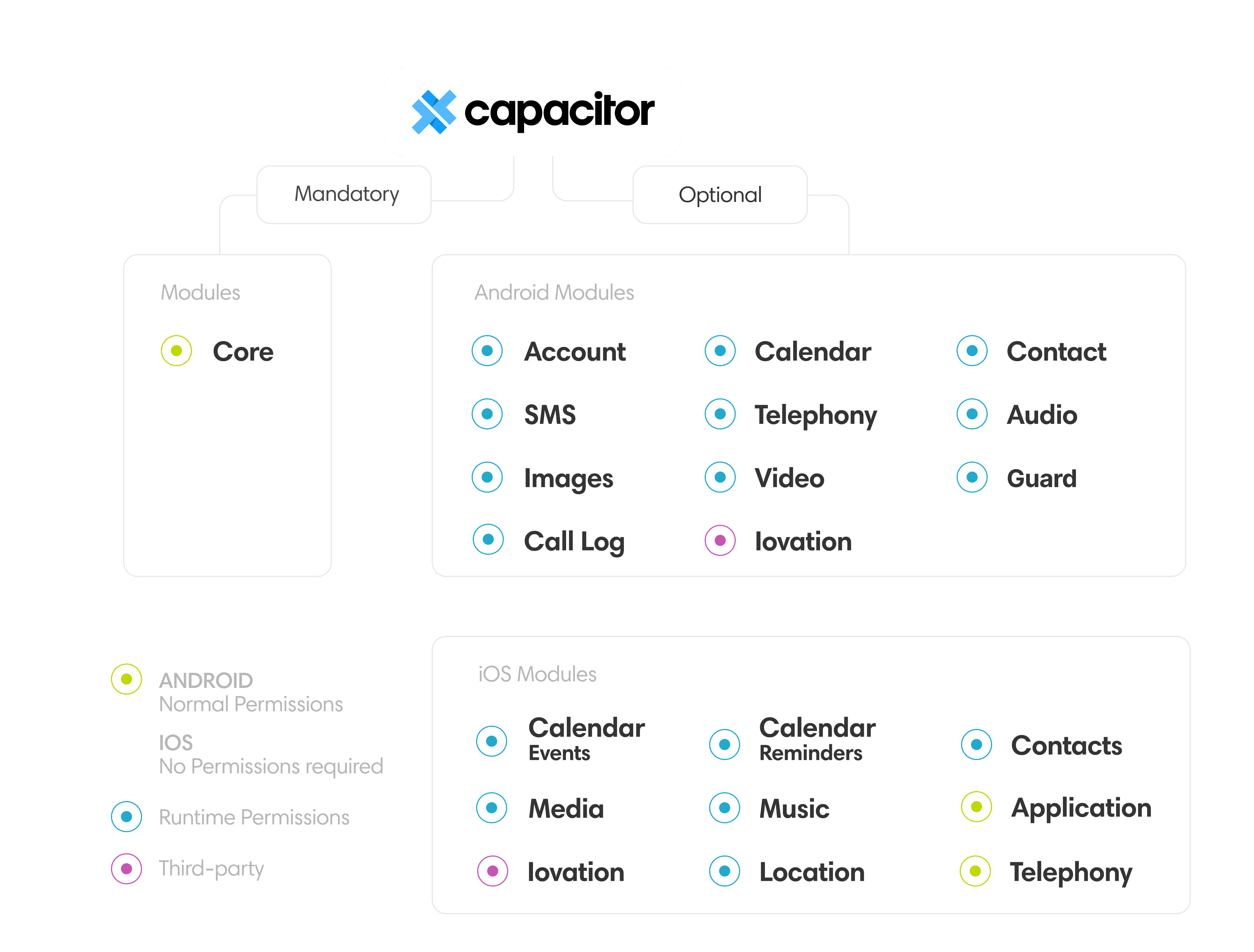 The Credolab Capacitor SDK is modular by design. At its foundation is a single mandatory Core module, which operates without accessing any runtime permissions. All additional features are provided through optional modules and plugins, each requesting only the specific permissions they require. This approach allows you to begin integration with just the modules that align with your app's existing permission set, keeping the implementation flexible, secure, and fully permission-scoped.